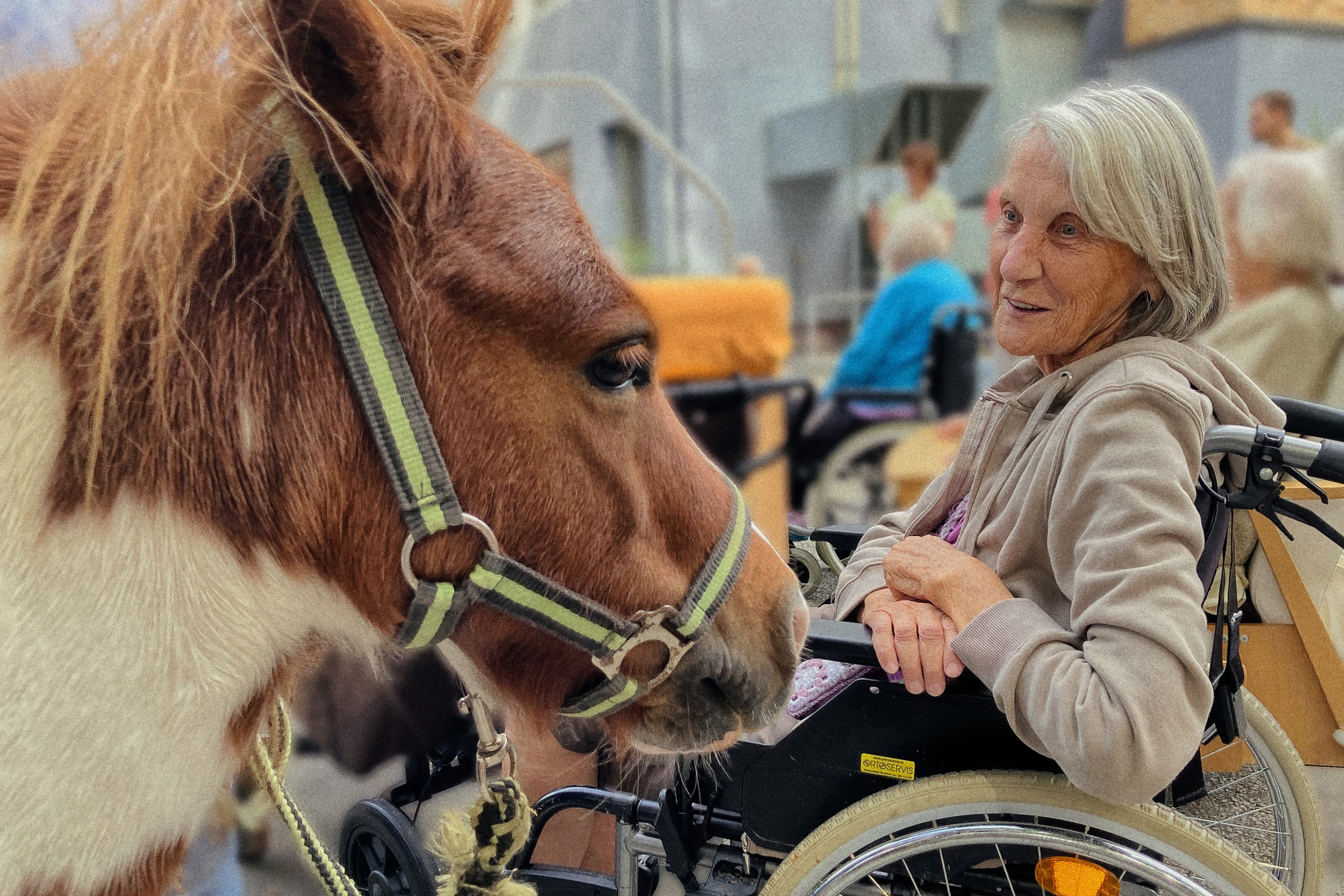 V průběhu dopoledne nás čekalo překvapení v podobě milé návštěvy paní Dvořákové a jejích třech poníků, které si naši uživatelé mohli prohlédnout zblízka a pohladit je.